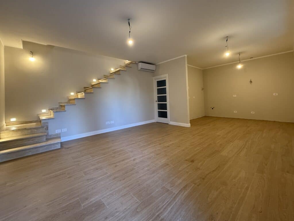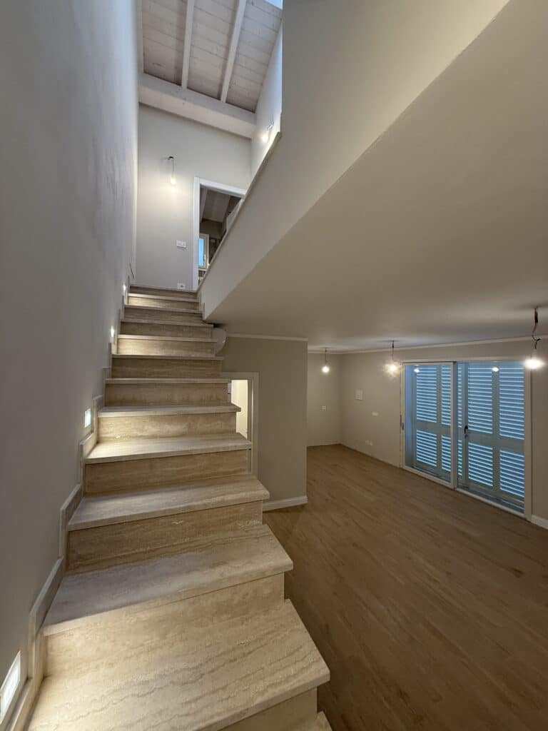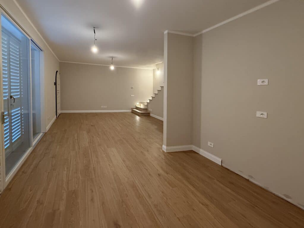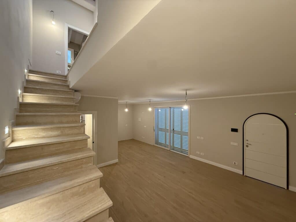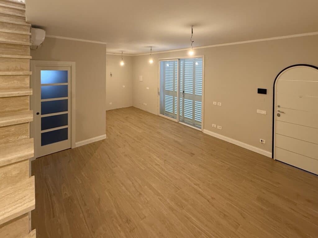 - Piano terreno di circa 55 mq, che ospita un’ampia zona giorno con angolo cottura, un bagno e un ripostiglio sottoscala.
