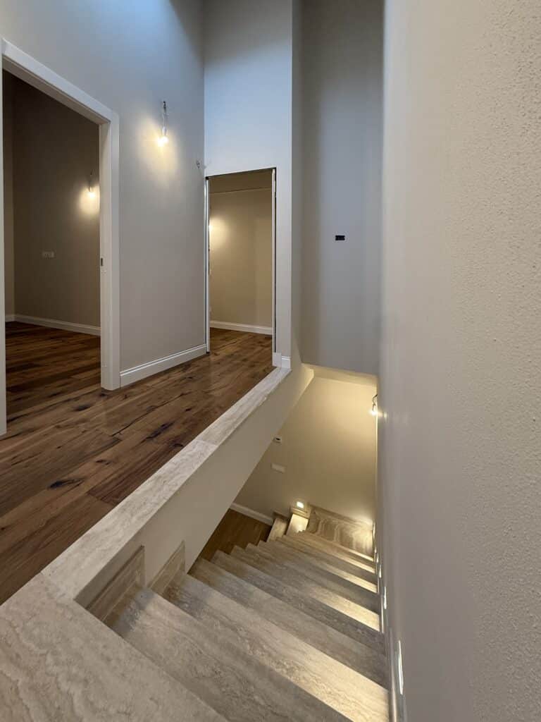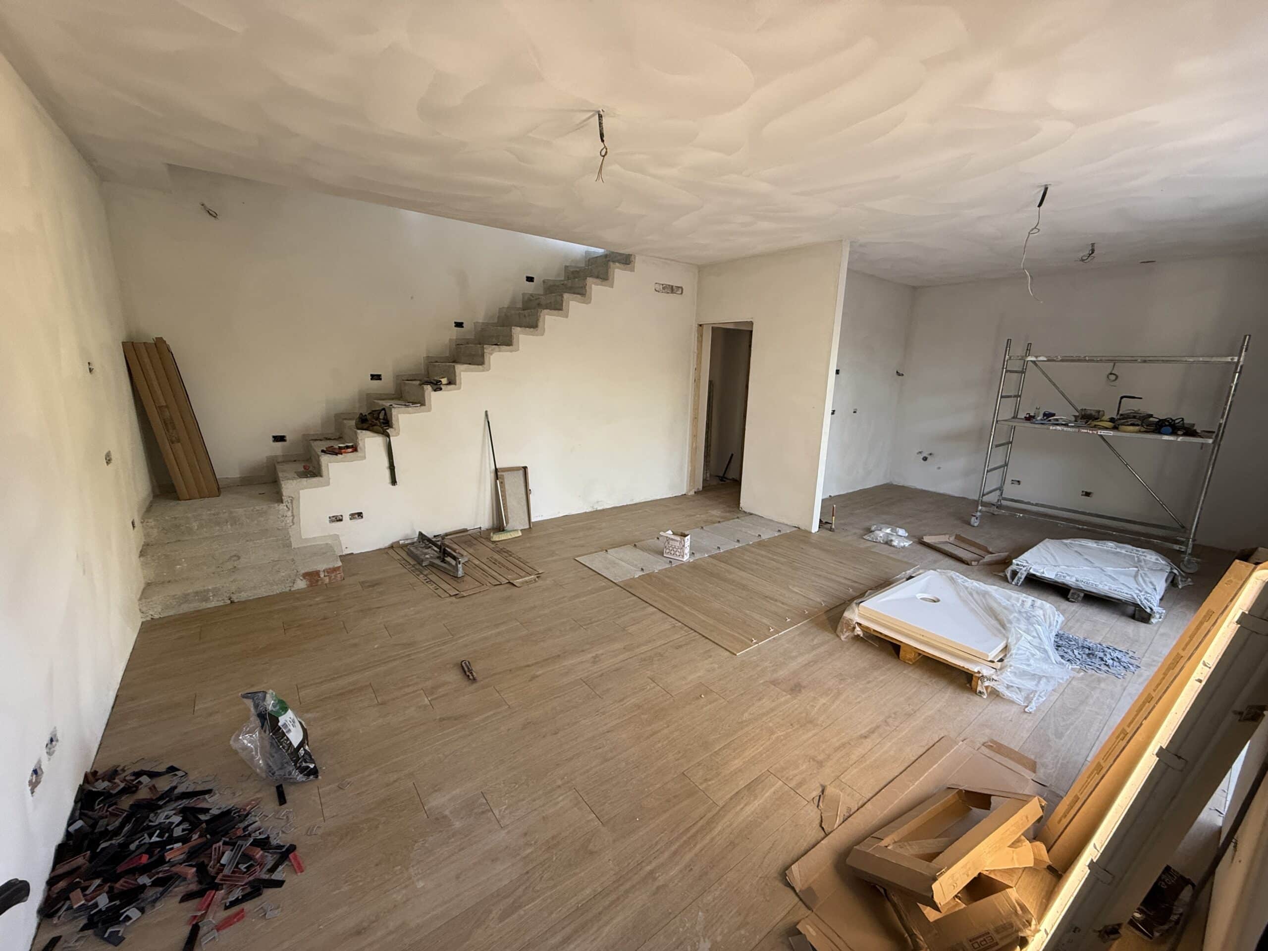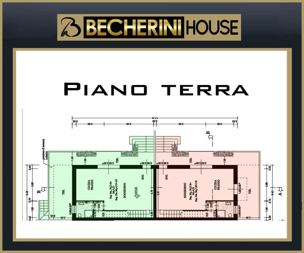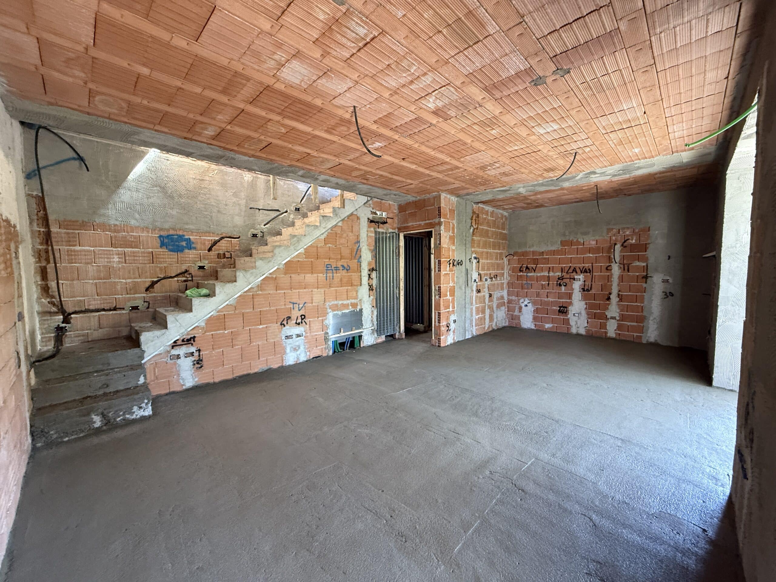 - Piano terreno di circa 55 mq, che ospita un’ampia zona giorno con angolo cottura, un bagno e un ripostiglio sottoscala.