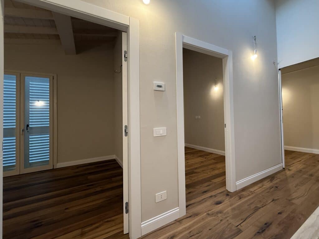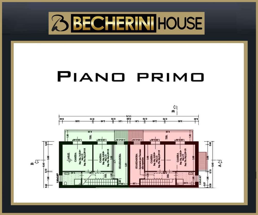 - Piano primo, anch’esso di circa 55 mq, caratterizzato da una camera matrimoniale, una cameretta, uno studio e un bagno.